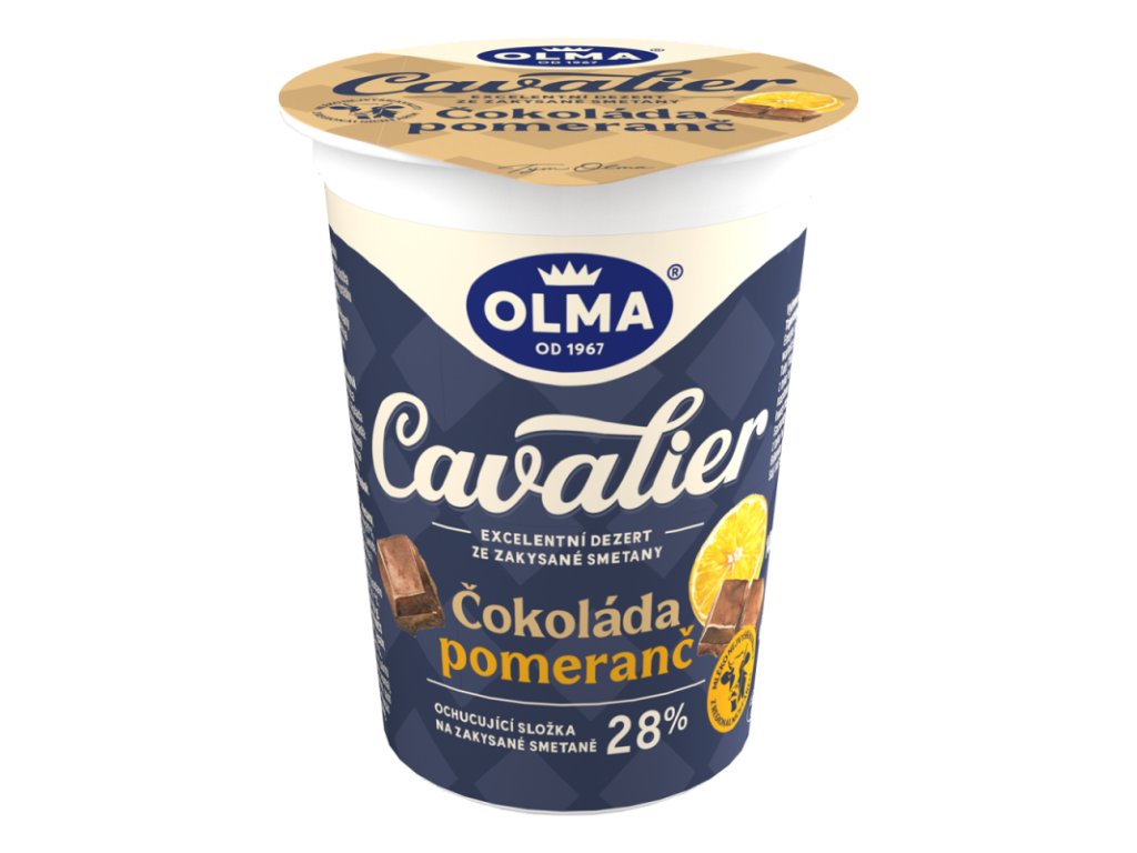 Smotana, Ochucujúca zložka 28 % (cukor, pomarančová šťava 29 %, čokoláda v prášku 15, 6 % (cukor, kakao 32 %), voda, zahusťovadlá: modifikovaný škrob a karubín, aróma), Modifikovaný škrob, Mliečne kultúry