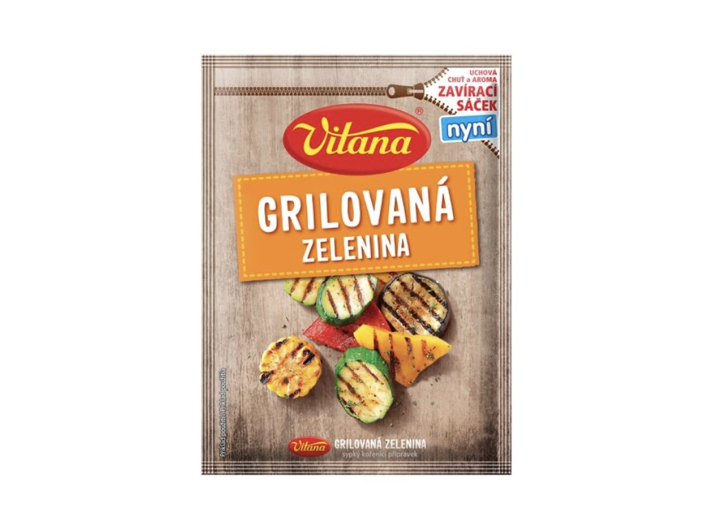 jedlá soľ 52 %, sušený cesnak mletý, sušená cibuľa mletá, zázvor mletý, horčica biela mletá, paprika sladká mletá, aróma, glukóza, sušený zelerový koreň mletý, sušená petržlenová vňať, sušené rajčiny drvené, kurkuma mletá, rasca mletá, koriander mletý, muškátový orech mletý, nové korenie mleté, tymian mletý, sušená červená paprika drvená, čili paprika mletá, paprika štipľavá mletá, protihrudkujúca látka E 341, oregano, korenie biele mleté, jalovec mletý